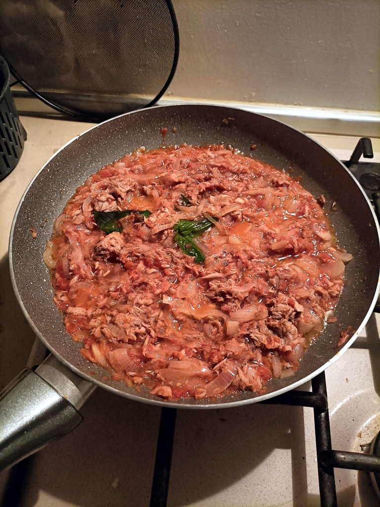 La preparazione del sugo col tonno si appoggiava su abitudini alimentari già consolidate, come il popolare friggione, la salsa a base di cipolla e pomodoro, e l’uso dei varmizi (i vermicelli) come venivano chiamati gli spaghetti in dialetto.