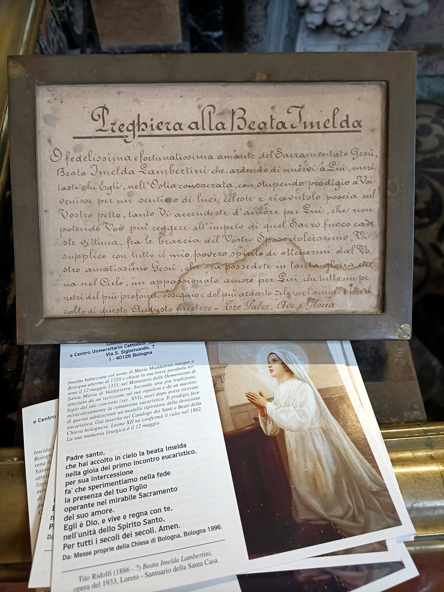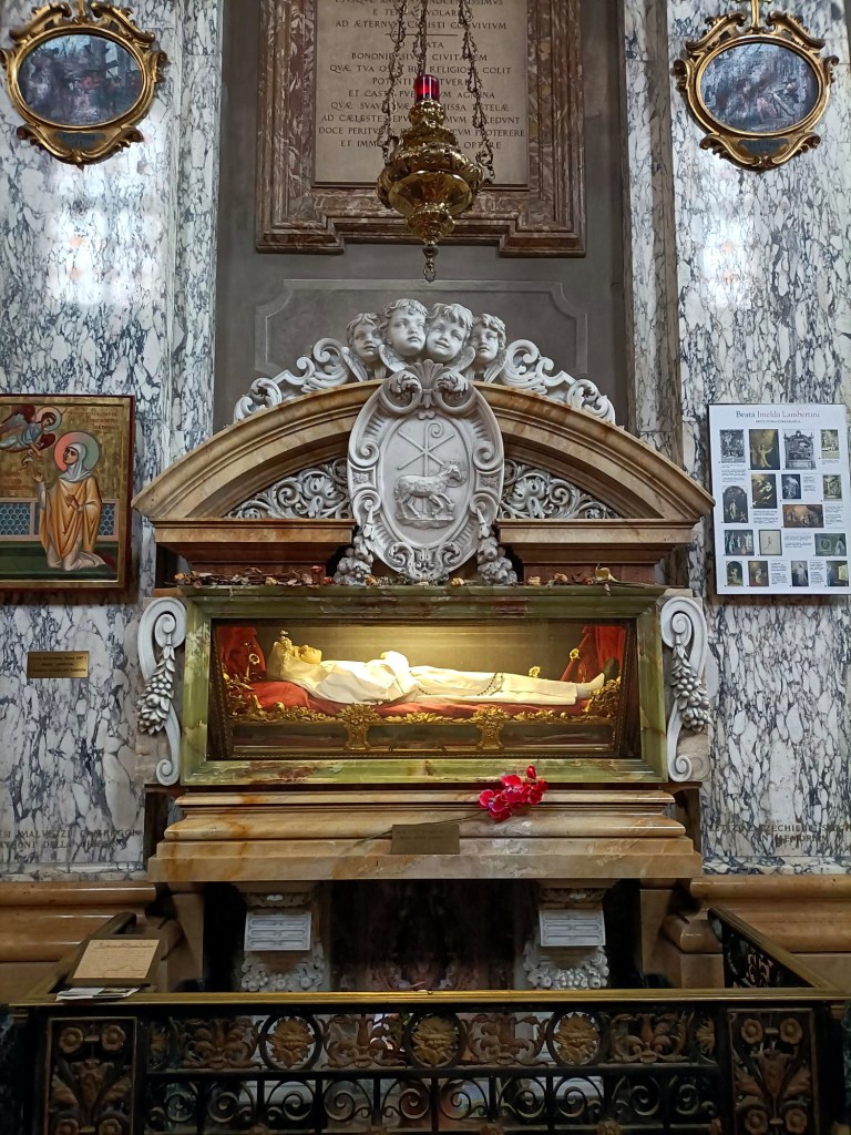 La chiesa merita certamente una visita, sia per l’architettura e le decorazioni, sia perché conserva le reliquie della Beata Imelda Lambertini (Bologna 1322-1333), esposte in una teca sotto la statua in gesso e cera che ritrae la giovane in modo impressionante.