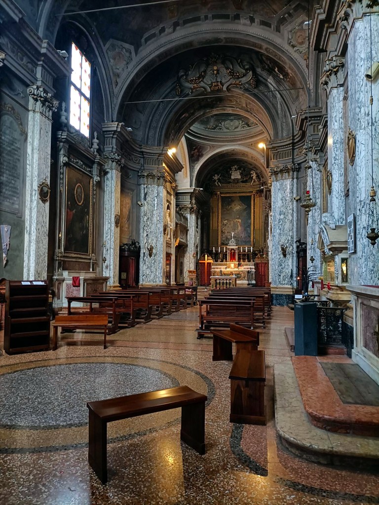 Pur avendo un aspetto esterno semplice, la chiesa conserva preziose tele. Nell’interno, arricchito di nuovi altari da Giuseppe Jarmorini nel 1792 e decorato nel 1870 da N. Angiolini e M. Mastellari, si conservano dipinti di L. Crespi e D. Pedrini.