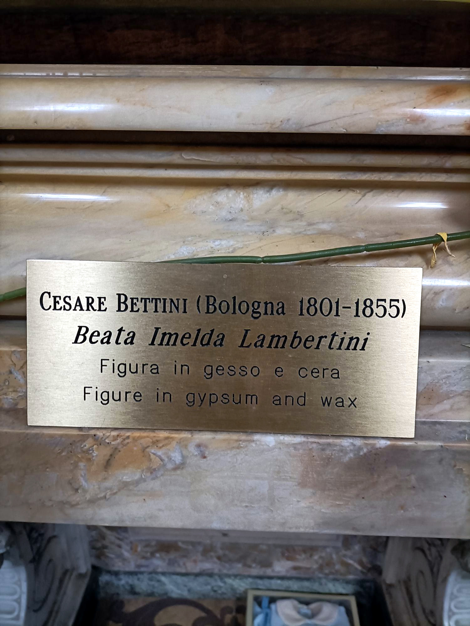 Le reliquie di Imelda sono visibili in una teca sotto la statua in gesso e cera realizzata dal plasticatore bolognese Cesare Bettini, che la ritrae in modo davvero impressionante.