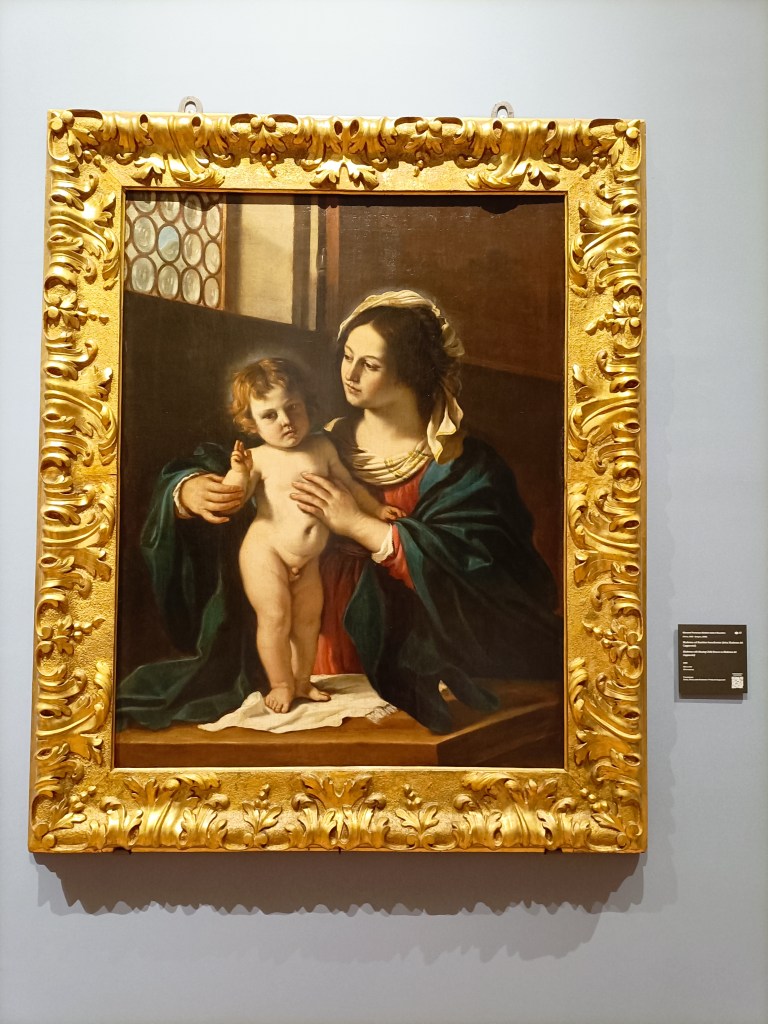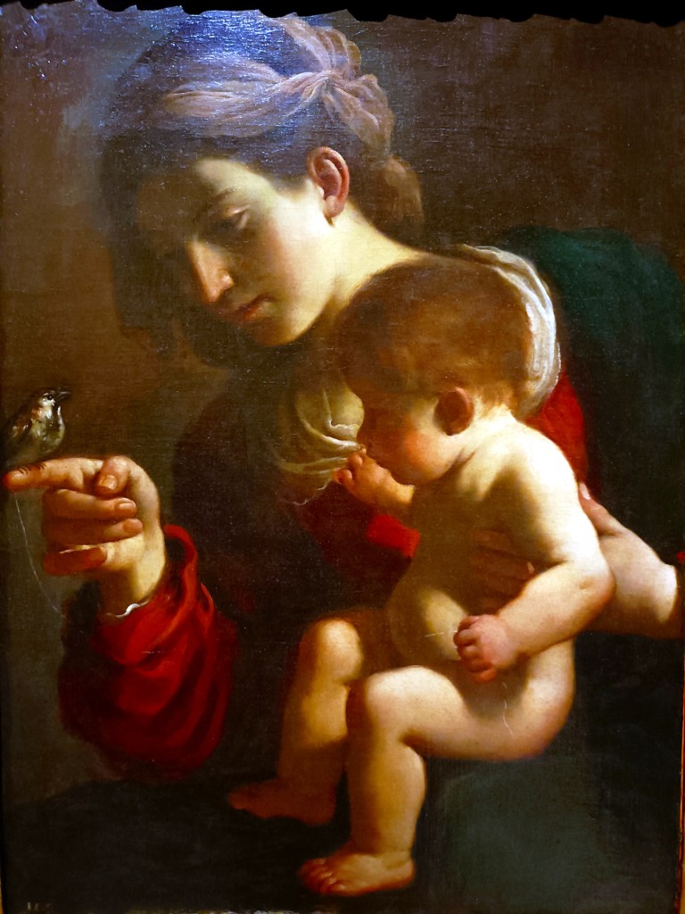 In questa stessa sala è esposta la Madonna del Passero (1615-1616), una tela famosissima e di una bellezza imbarazzante. Impossibile non commuoversi davanti a questo Bambino che con una manina si tiene alla mamma e con l’altra regge una corda al quale è legato un passero, allegoria del suo destino.
