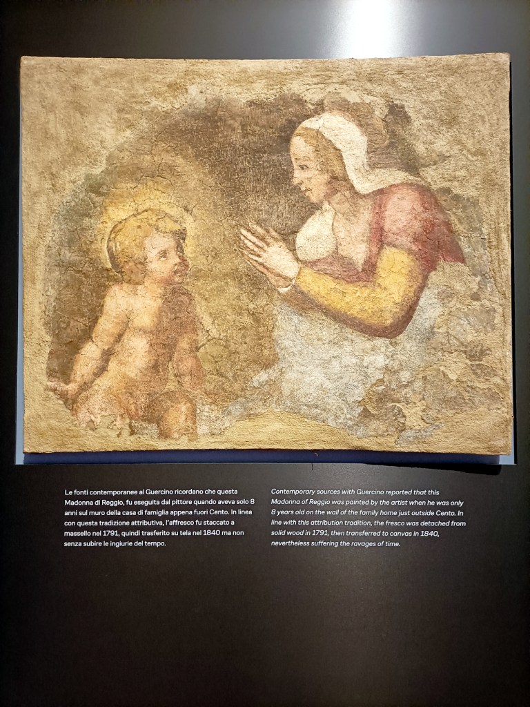 Guercino nasce l’8 febbraio 1591 a Cento, che allora fa parte dei domini estensi. I cronachisti del tempo scrivono che a 6 anni dimostrò una particolare inclinazione per il disegno e che a 8 “dipinse una Madonna di Reggio sulla facciata della casa dove abitava” da autodidatta. Un fenomeno, insomma.